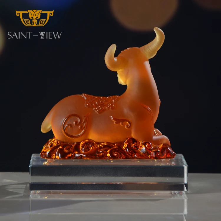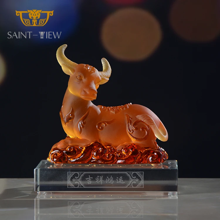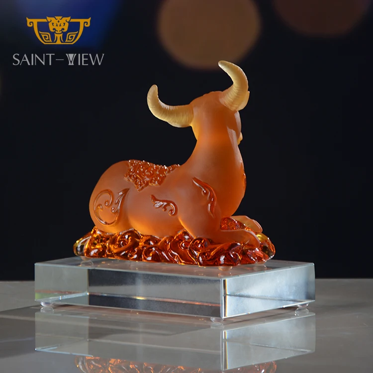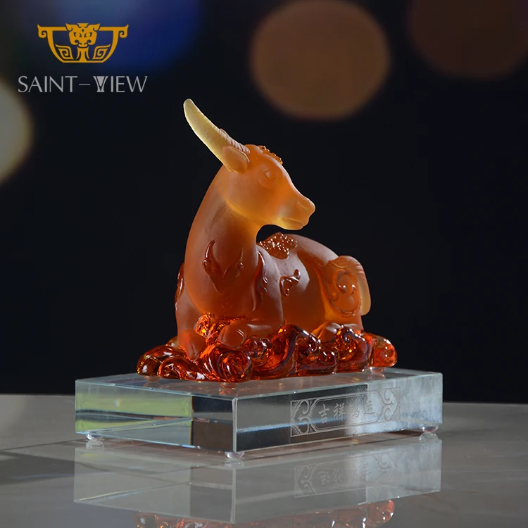 SAINT-VIEW 2026 New Design Liuli Crystal Art Ox Statue Auspicious Company Gift